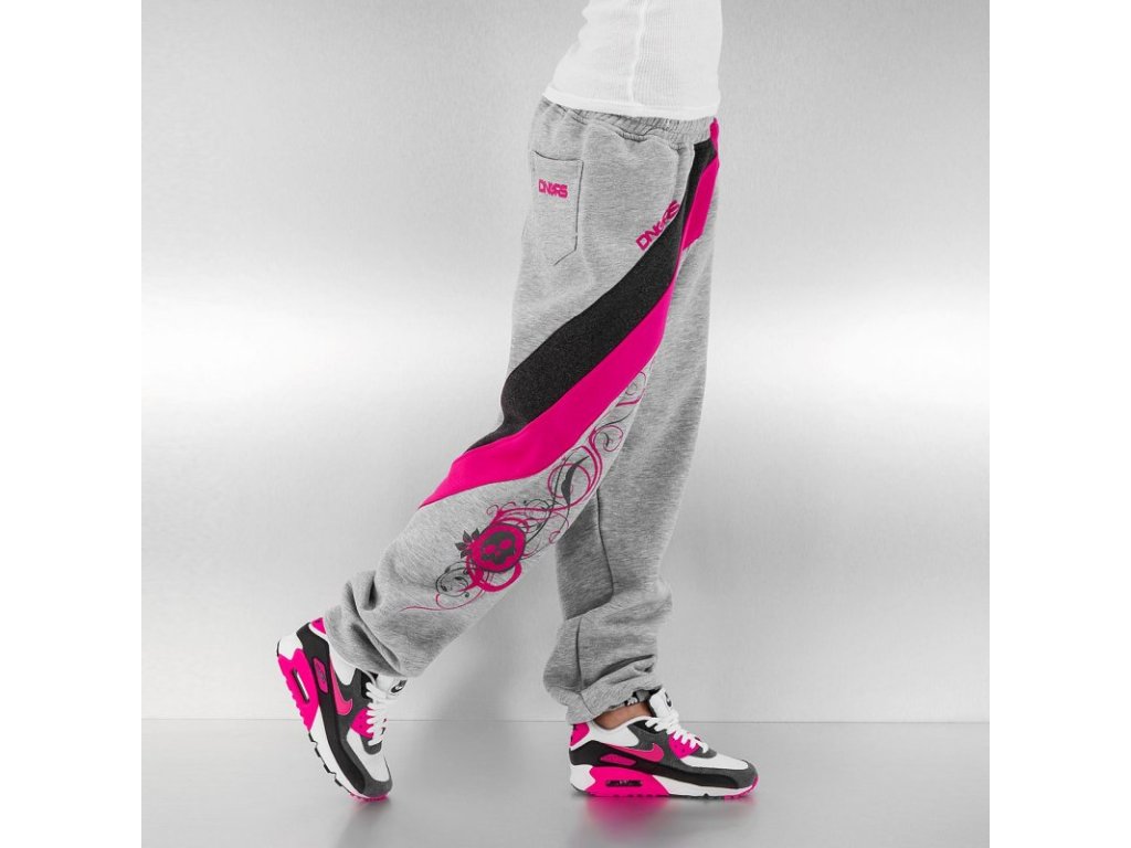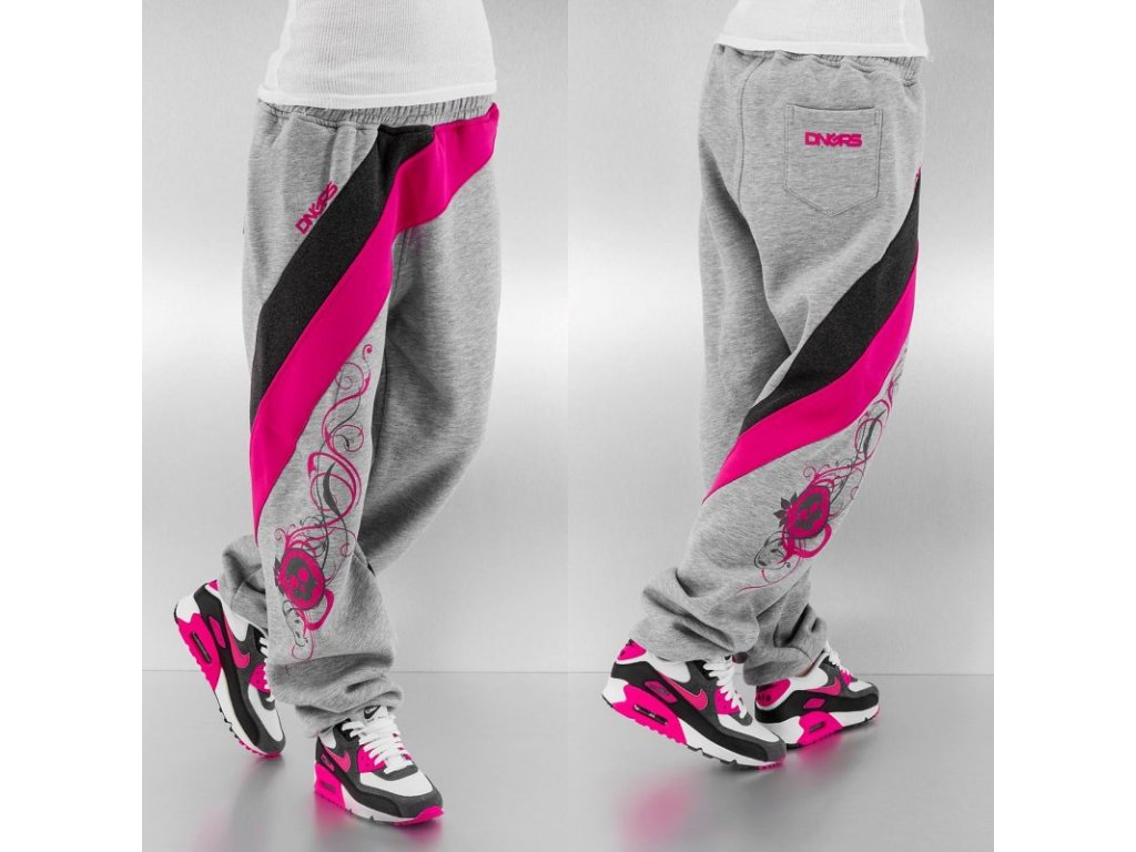 Dámské hip hop tepláky značky Dangerous. Tyto dámské tepláky šedo-růžové barevné kombinace nesmí chybět ve vašem šatníku.