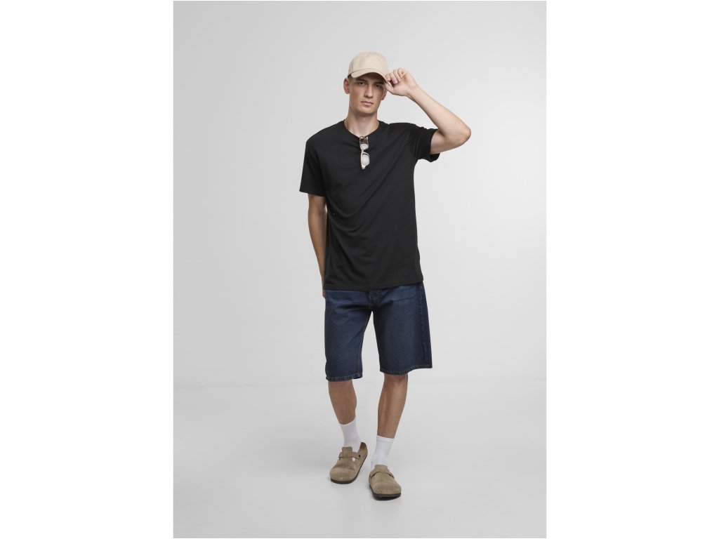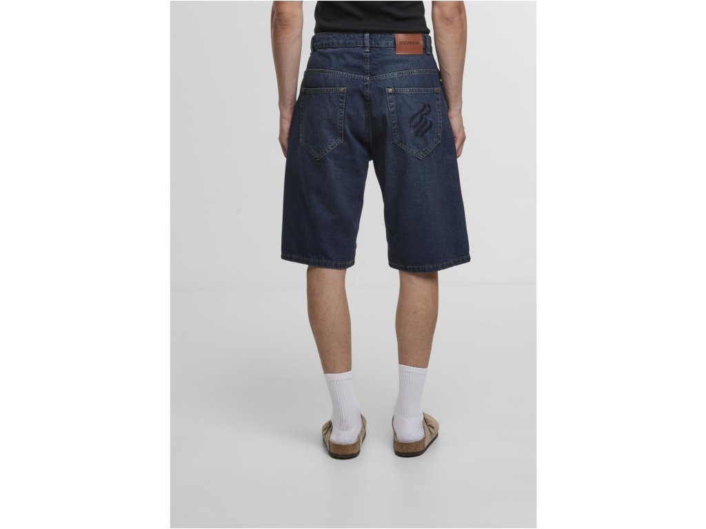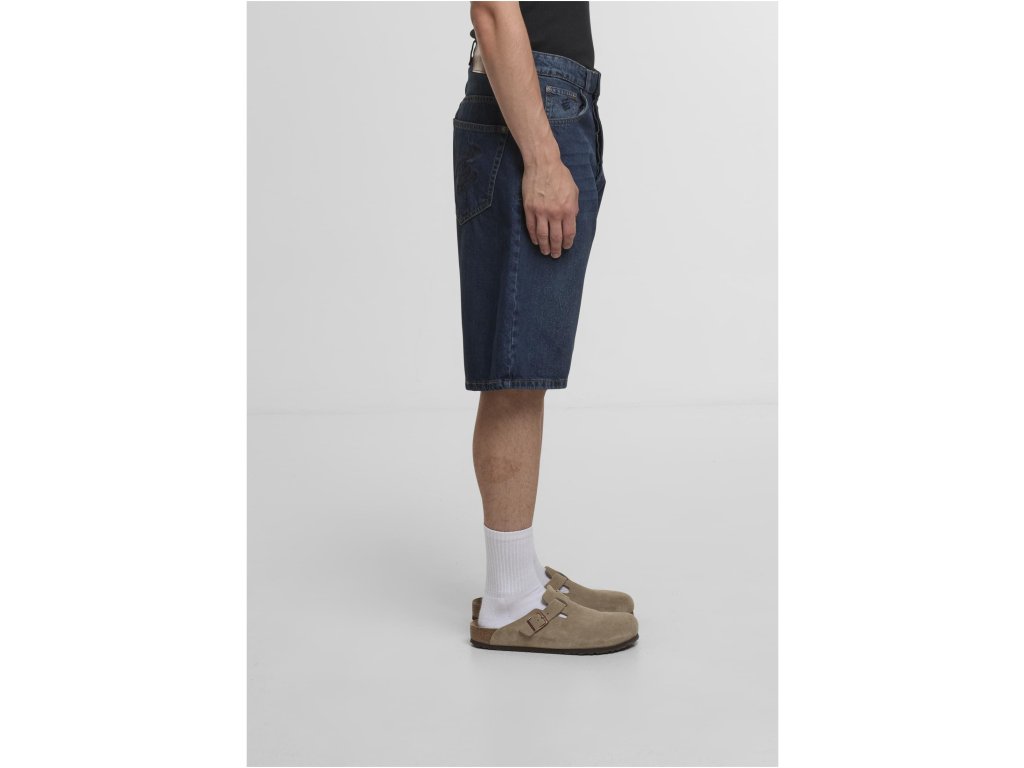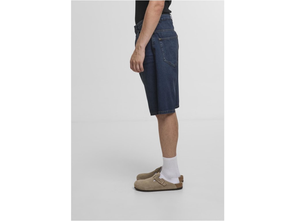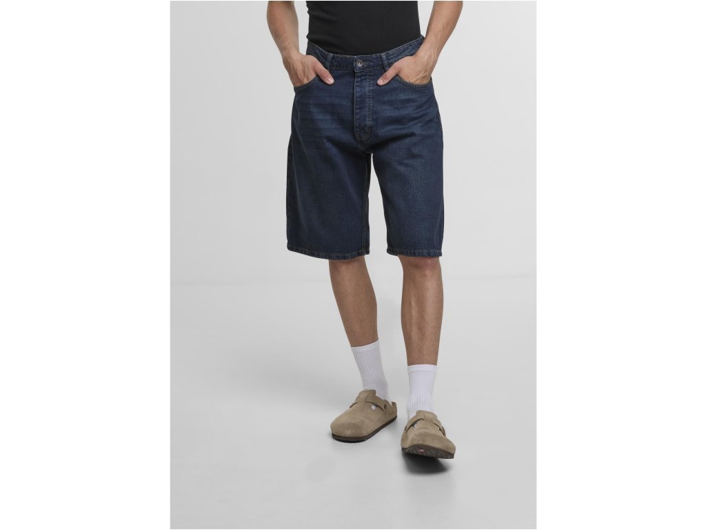 Džínové kraťasy volného střihu se středně vysokým pasem.